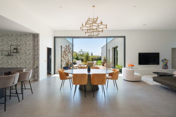 Situated in a privileged, unoverlooked environment, this superb contemporary single-storey villa will seduce you with its generous volumes, luminosity and top-of-the-range features. Set in landscaped grounds of 1,314 m², it offers 227 m² of living space, complemented by an outbuilding, a 43 m² garage and a magnificent swimming pool.