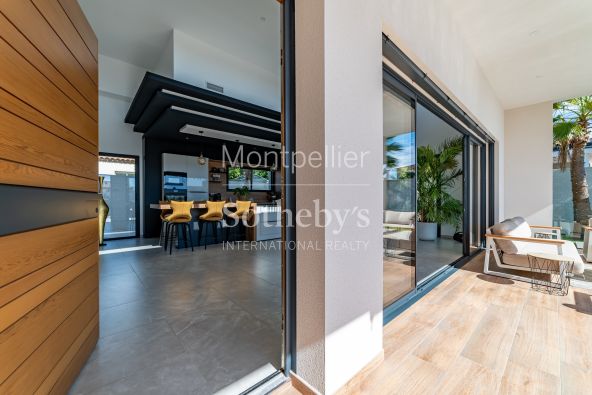 Located in a quiet and sought-after area of Vias, just a 15-minute walk from the beaches, this contemporary single-story villa embodies the perfect balance between luxury, comfort, and refinement.