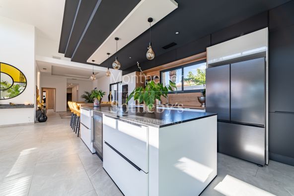 Upon entering, you will be charmed by a bright double living room with exceptional volume, enhanced by double-height ceilings and south-facing exposure. This unique living space opens onto an exceptional, fully equipped open-plan kitchen, combining modern design and high-end materials.