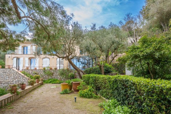 A charming property with terraced gardens surrounded by lush vegetation...